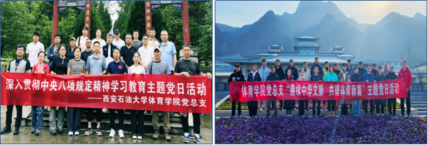 在党建赋能体育竞技方面,发挥党员先锋模范作用,组建以党员教师为核心的教练团队,学院取得教工篮球、乒乓球比赛冠军。教师吴荣平在第十五届全运会群众组网球单打比赛中斩获季军。加强运动员思想政治教育,建立“训练+育人”双培养机制,2005级新生赢得学校晨曦杯篮球赛冠军,并在陕西省第四十四届大学生田径运动会及在陕西省高校民族传统体育运动会等赛事中斩获佳绩。